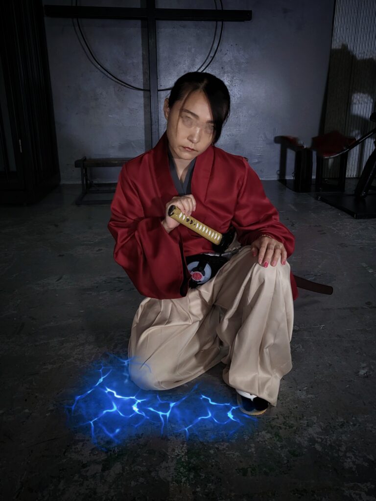 (雷光とともに現れる新たなる霊衣を纏う戦女!)