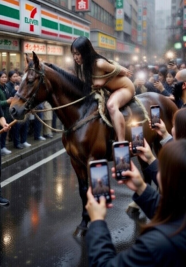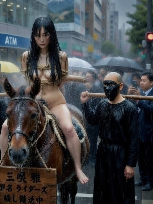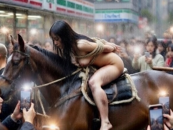 「おいおい、来たぞ、来たぞ!本当に全裸で馬にまたがってるぞ!」